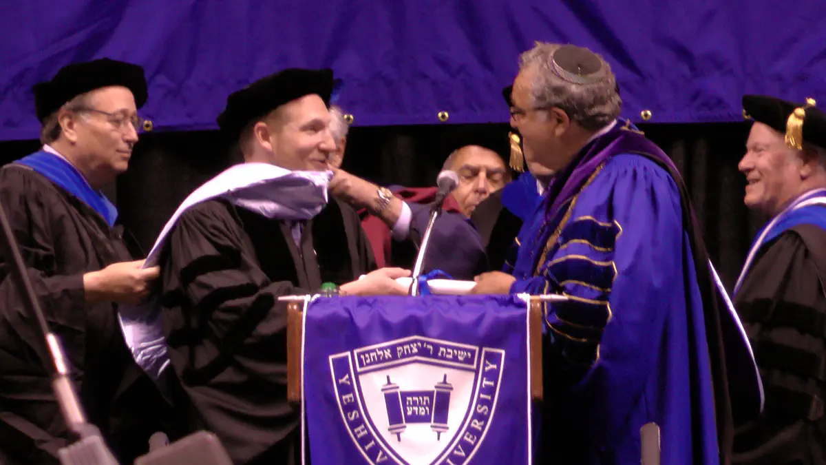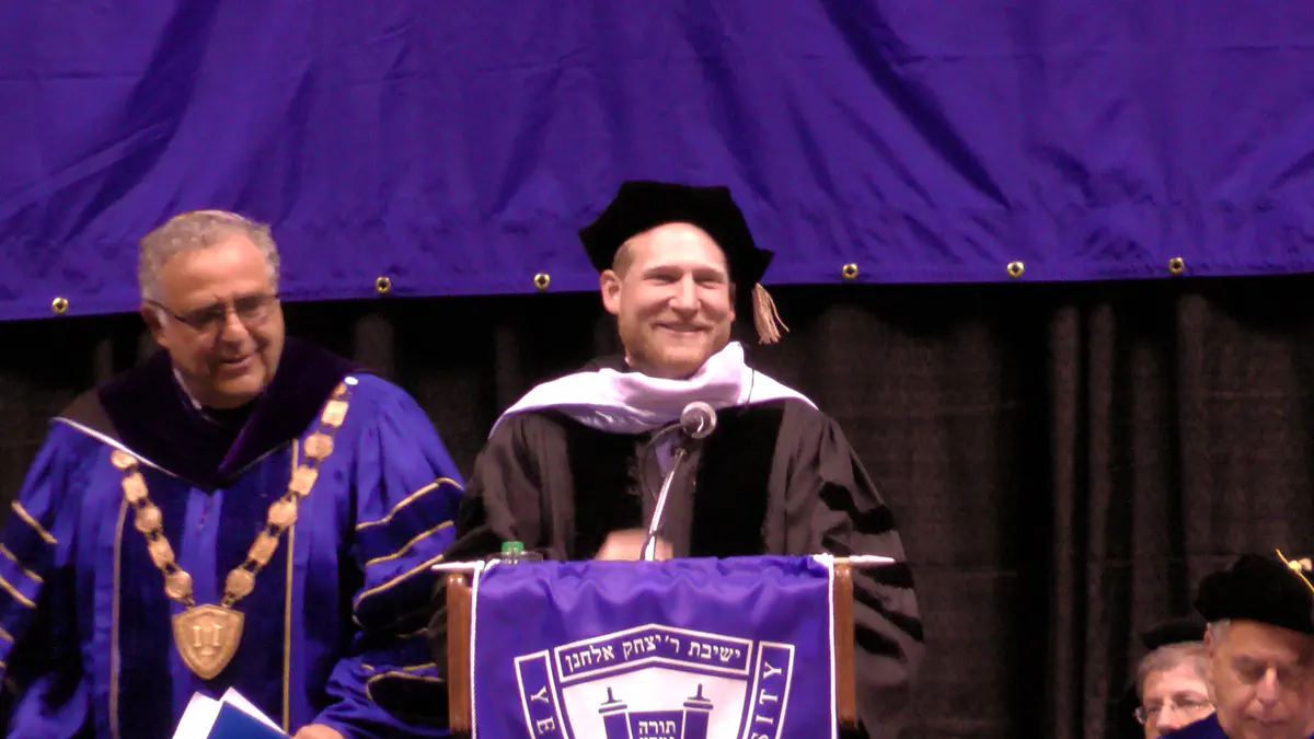 A large commencement exercise was held in New Jersey, Thursday, for Yeshiva University’s latest graduates. During the ceremony the university honored several people, among them alumnus Rabbi Yehoshua Fass, co-founder of the Nefesh B’Nefesh organization for aliyah (immigration) to Israel.
