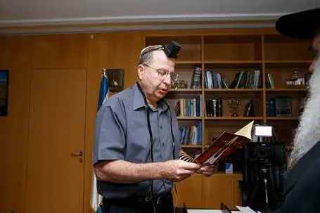 Ya’alon hosted in his office a delegation of rabbis and Chabad emissaries and he was given the honor of writing the Hebrew letter “bet, the first letter in the word Bereisheet, which begins the Torah.