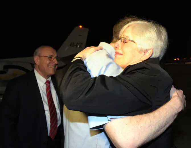 Grapel was being escorted to Israel by Prime Minister Binyamin Netanyahu's envoy Yitzhak Molcho, and Kadima MK and former deputy Shin Bet (Israel Security Agency) head Yisrael Hasson. Both men were insturmental in negotiating his release.