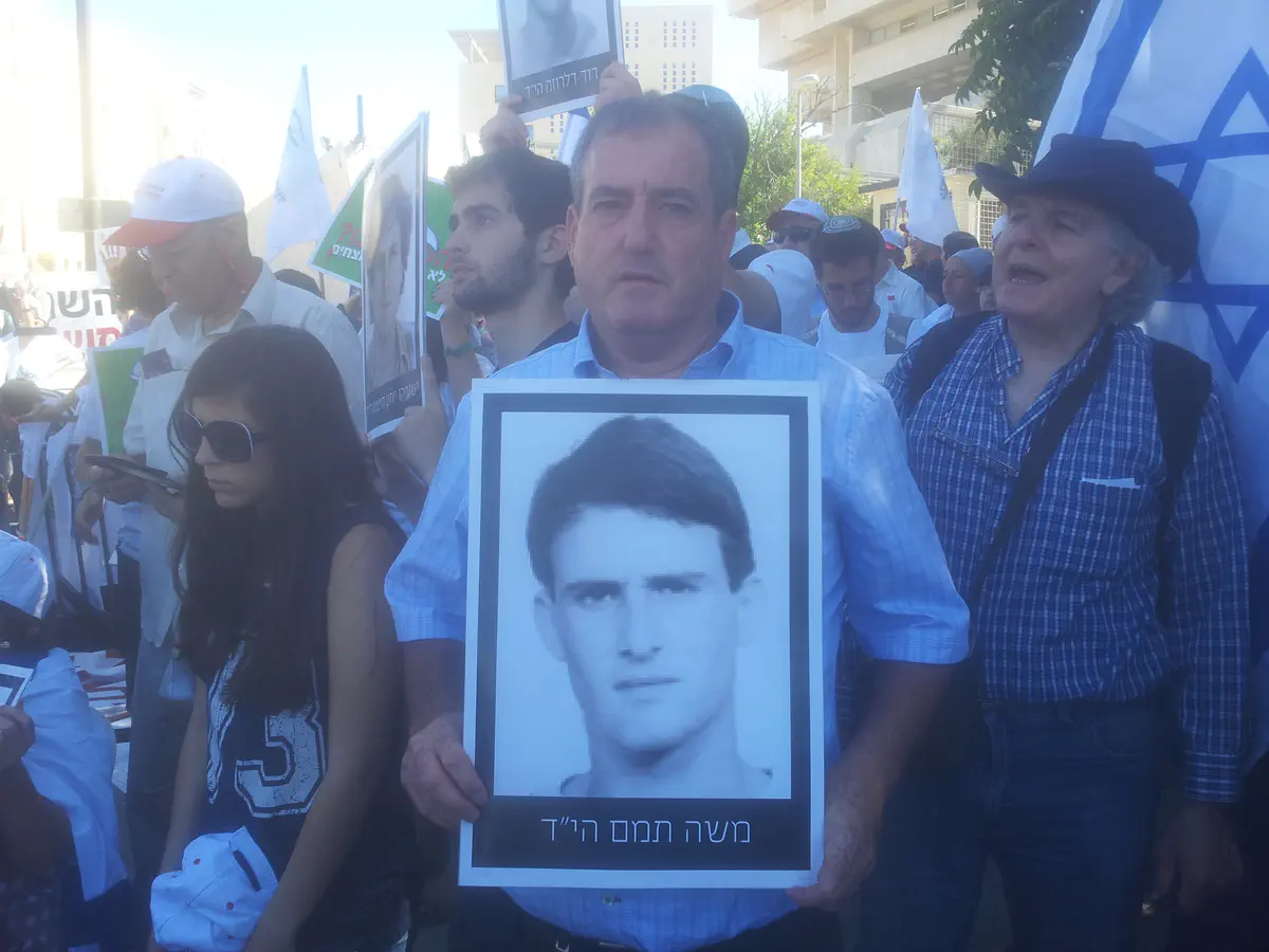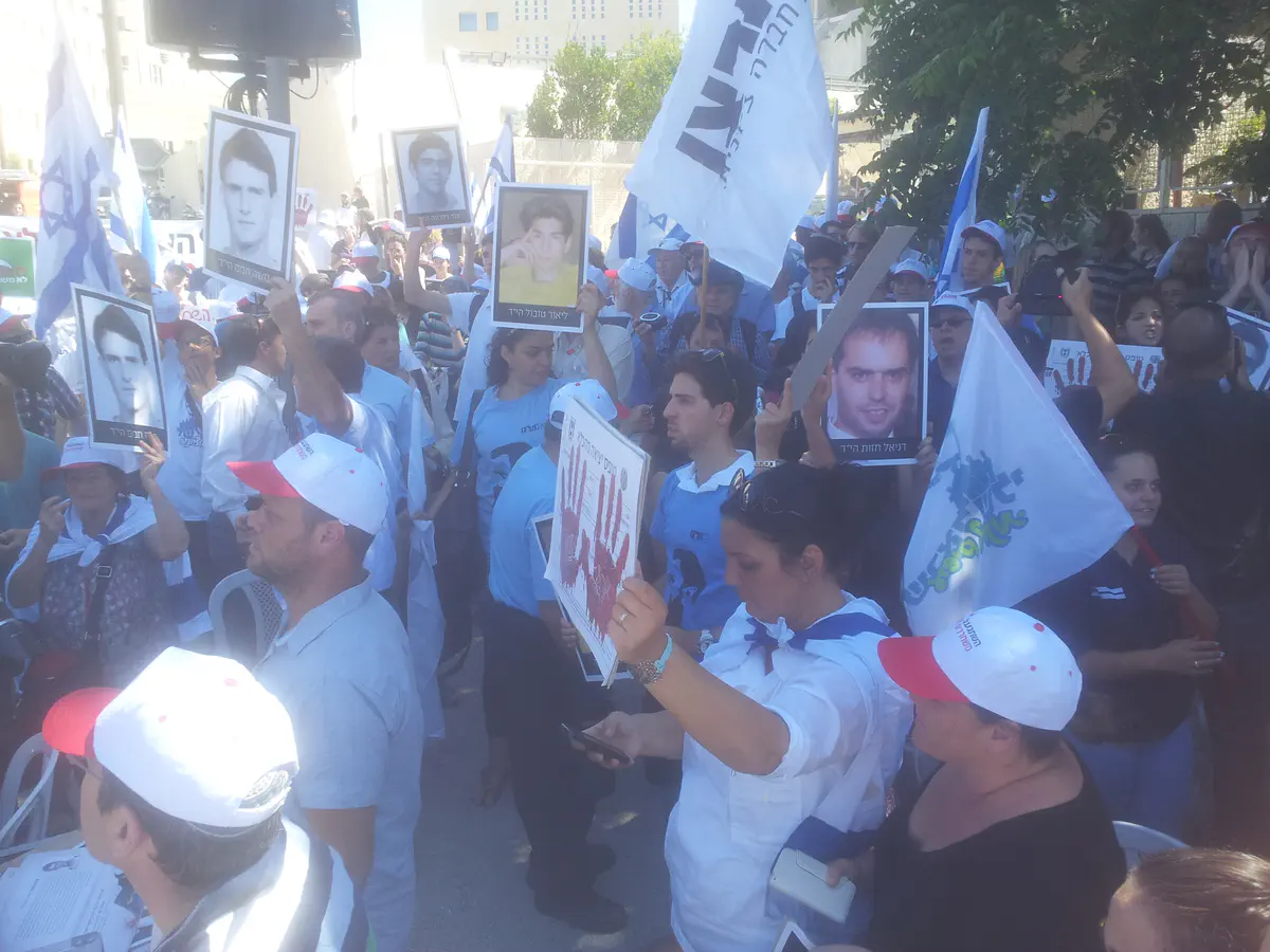Some waved protest signs, while others simply held Israeli flags or photographs of their dead loved ones.
