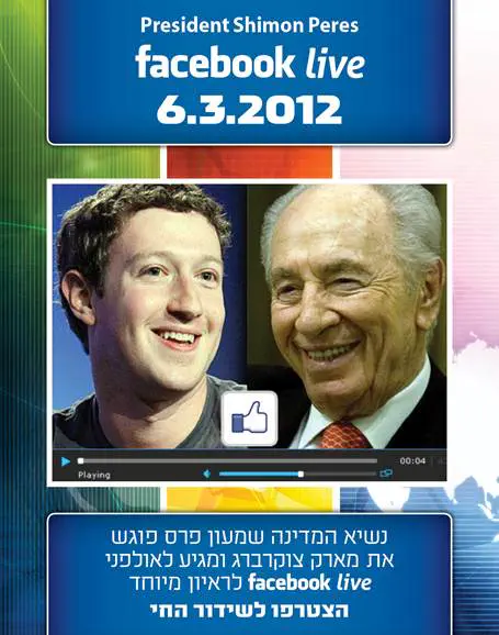 Peres will kick off a festive event, the International Facebook page, along with Facebook founder, Mark Zuckerberg.