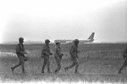 At first, soldiers considered forming a human pyramid to allow them to reach the wings and doors of the aircraft. They left twice to begin the mission, but were called back.