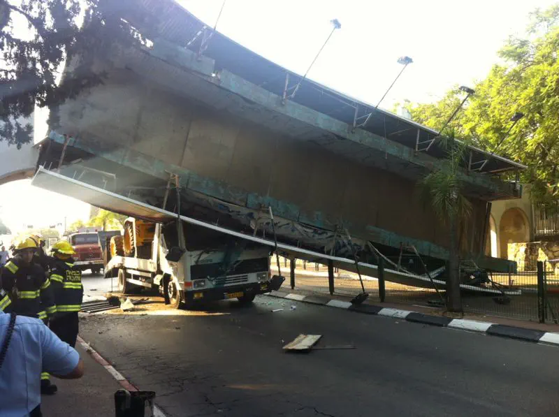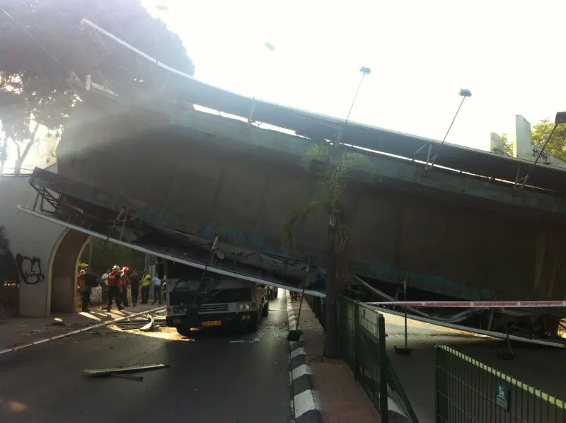 A pedestrian walkway collapsed on Sunday morning in the city of Kfar Saba. The incident took place on Weitzman Street, a major thoroughfare.