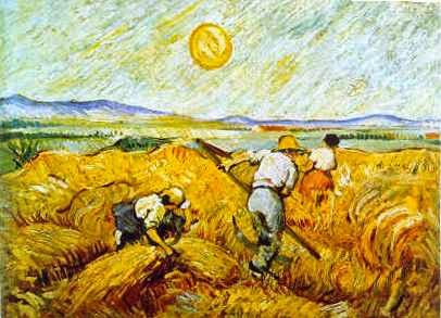 Compare to Van Gogh -- Harvesting wheat in the AlpillesValley (1888)