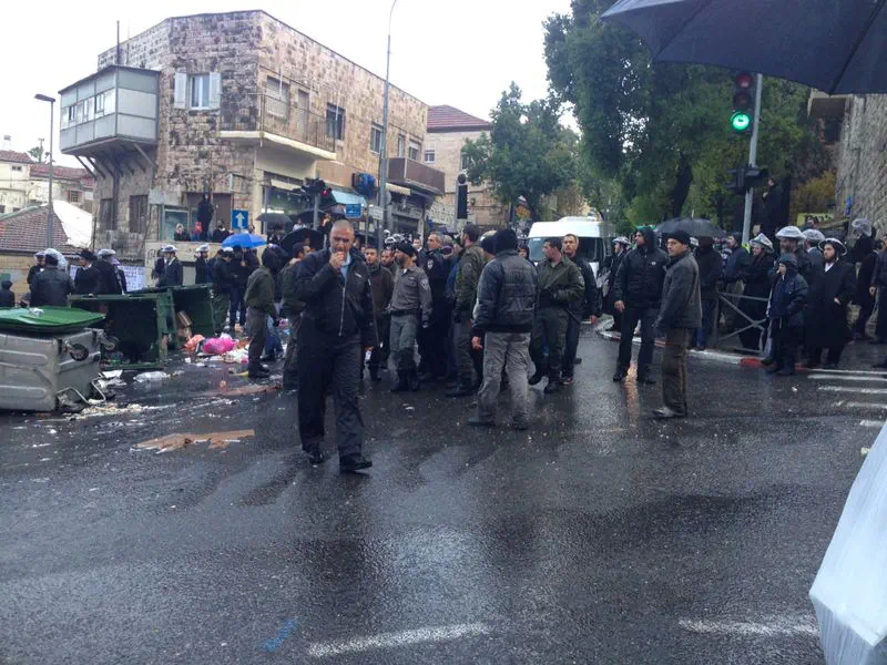 Several of the protesters threw rocks at police officers at the site and set fire to trash cans. Police brought out water cannons to disperse the protest, and arrested two people for rioting. The Eida Hareidit reported that three people were injured during the clashes.