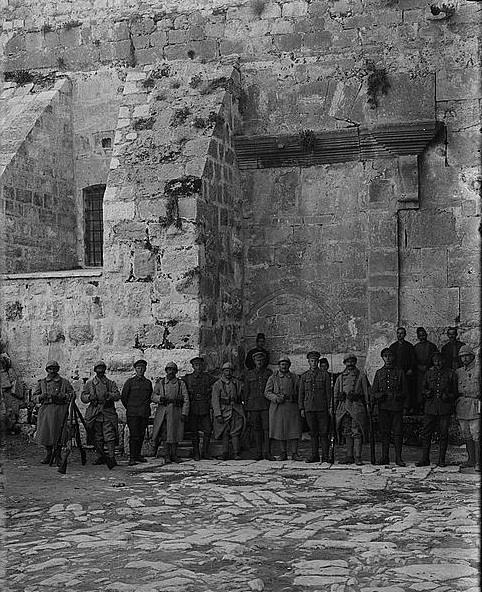British and French soldiers guarding the Church of the Nativity (circa 1918)