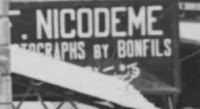 A sign on the street advertises "Bonfils," one of the leading photographers in the Near East at the end of the 19th century. Many of his pictures appear in Israel Daily Picture.