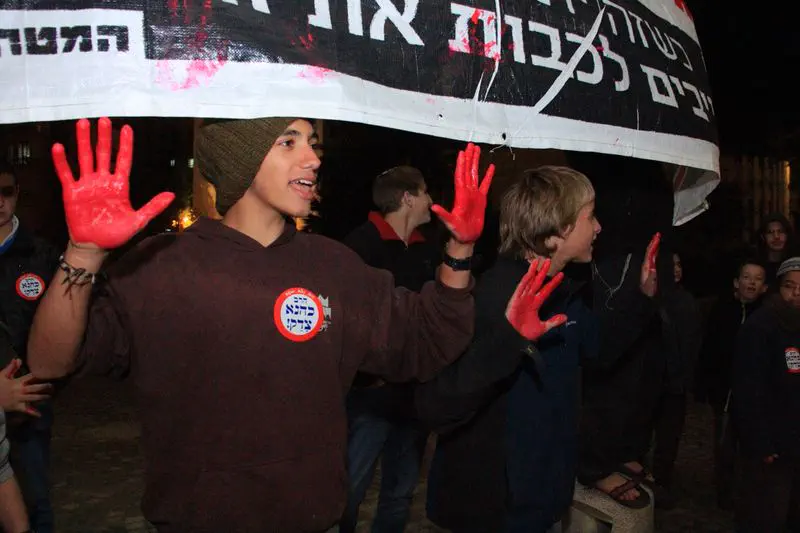 Activists from Judea and Samaria, along with members of the Komemiyut organization, on Sunday night protested the developing agreement between Israel and the Palestinian Authority. According to the activists, the statements emerging from the government and from officials traveling with U.S. Secretary of State John Kerry indicate that an interim agreement is near, and that it will likely be very damaging to the state of Israel, and to towns in Judea and Samaria.