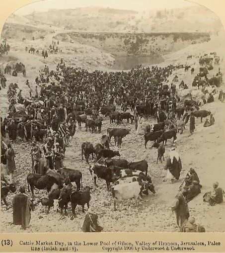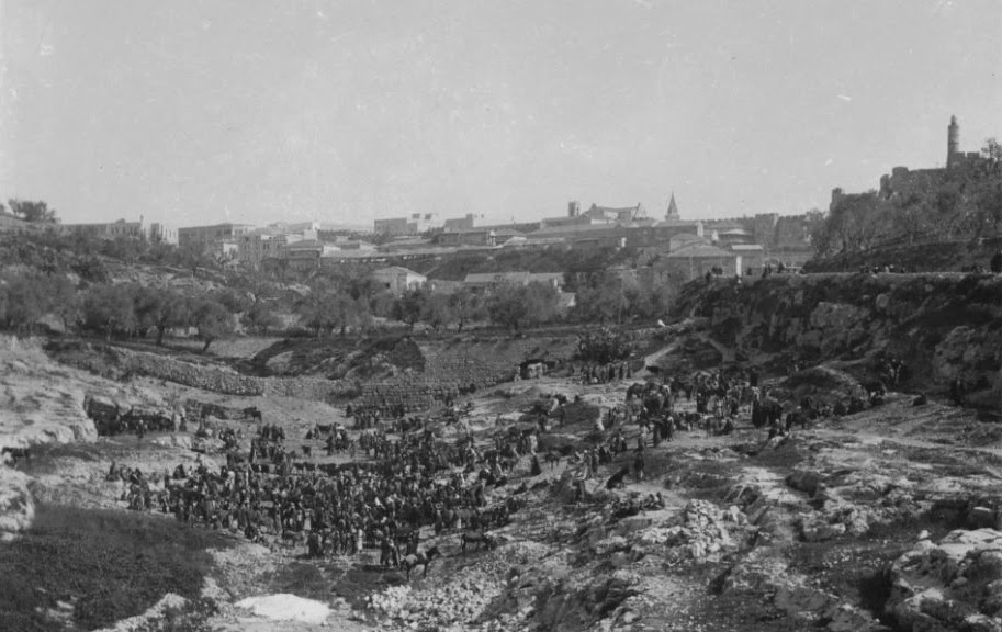 Photo of the Hinom Valley cattle market taken from the dam (Credit: Keystone-Mast Collection, California Museum of Photography at UCR ARTSblock, University of California, Riverside)