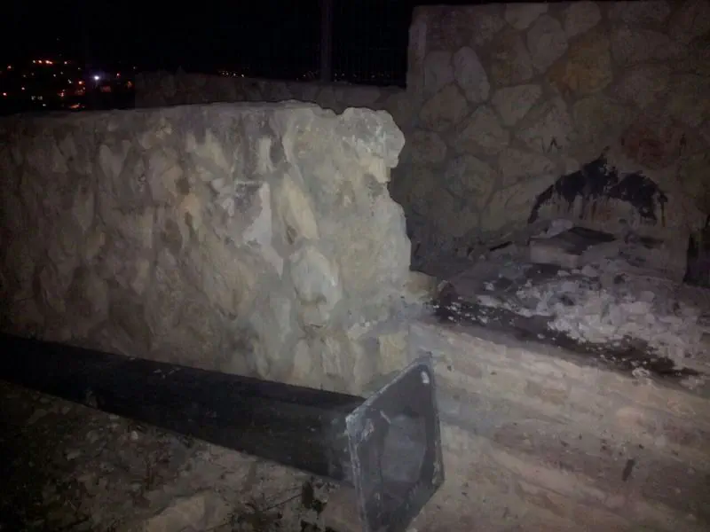 "The terrorists set fire to tires and threw Molotov cocktails at the burial cave of the Admor of Gur. Tall pillars of security cameras were set on fire and uprooted, fences were broken and had been torn out. Gravestones were smashed."