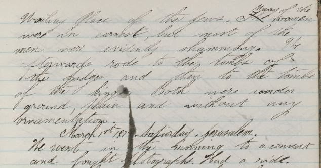 "In the afternoon we went to the Wailing Place of the Jews. Many of the women were in earnest, but most of the men were evidently shamming."