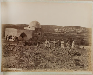 A preview of Bonfils' photographs includes the one of Rachel's Tomb as it used to look. The photo is repeated and explained below.