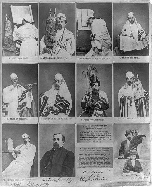 Searching for historic photographs of Rosh Hashanah and blowing the shofar (ram's horn), we discovered a poster showing Jewish pictures of Jewish festivals. Starring in the 1879 photo gallery was a man named Max Rossvally.