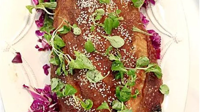 Season the fish with salt and pepper. Preheat the oven to 450. Roast the salmon for 5 minutes. Remove from the oven and brush the glaze onto the fillets et return to the oven. Cook for about 3 to 5 minutes. Once the fish is ready, sprinkle some sesame seeds on top.