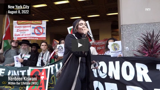 At an Aug. 8 NYC rally for Gaza co-sponsored by PYM, Samidoun, Within Our Lifetime (WOL) and other radical groups, protesters justified terrorism and called for Israel's destruction.