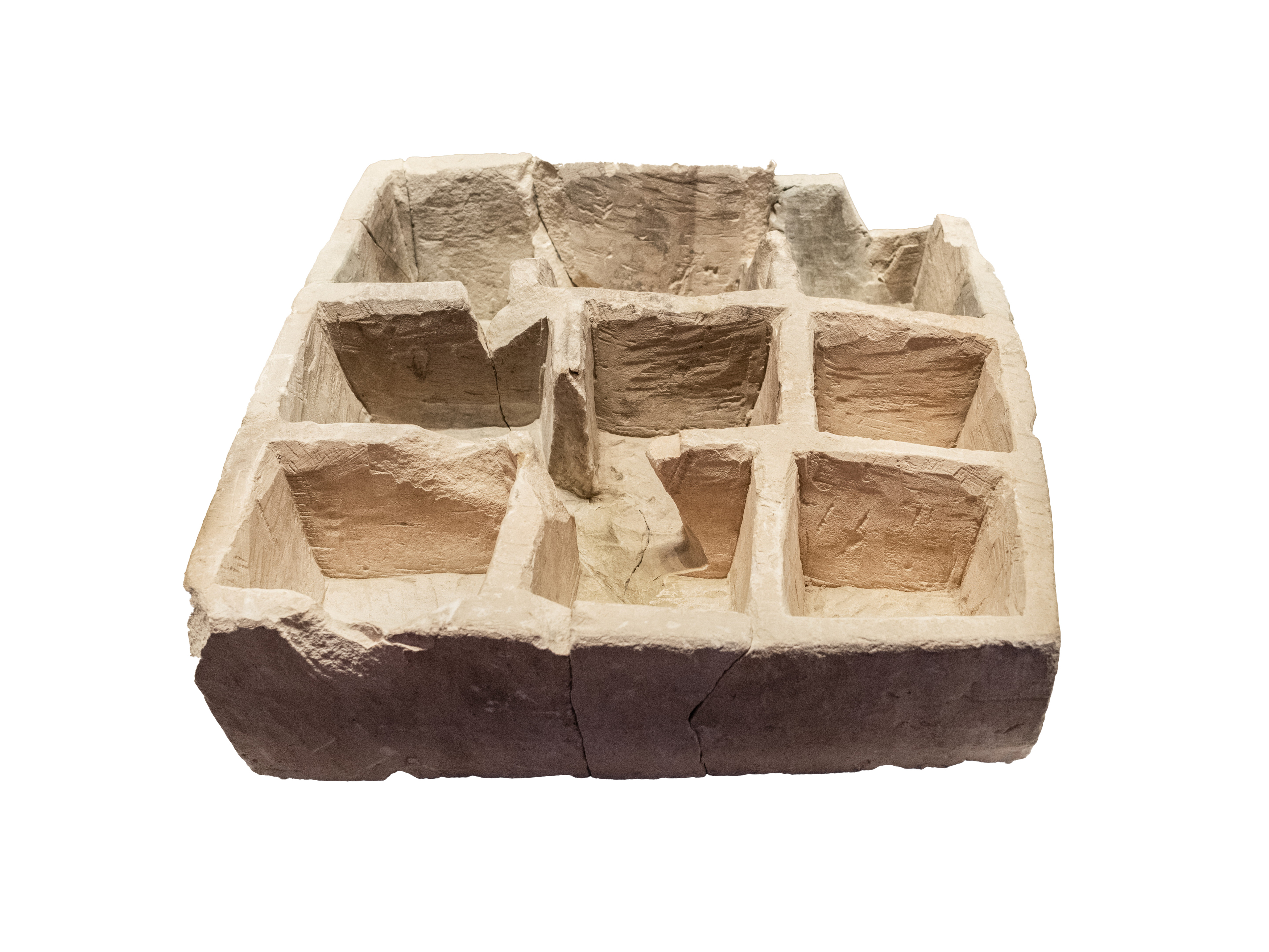The square box, measuring 30 x 30 cm, was carved from soft limestone and divided inside into nine equal sized compartments. The multi-compartment container was discovered in a destruction layer inside an ancient store dated to the end of the Second Temple period that once stood alongside the Pilgrimage Road in the City of David. The sides of the box are blackened, indicating that is was burnt perhaps during events of the Great Jewish Revolt, which ultimately led to the destruction of Jerusalem.