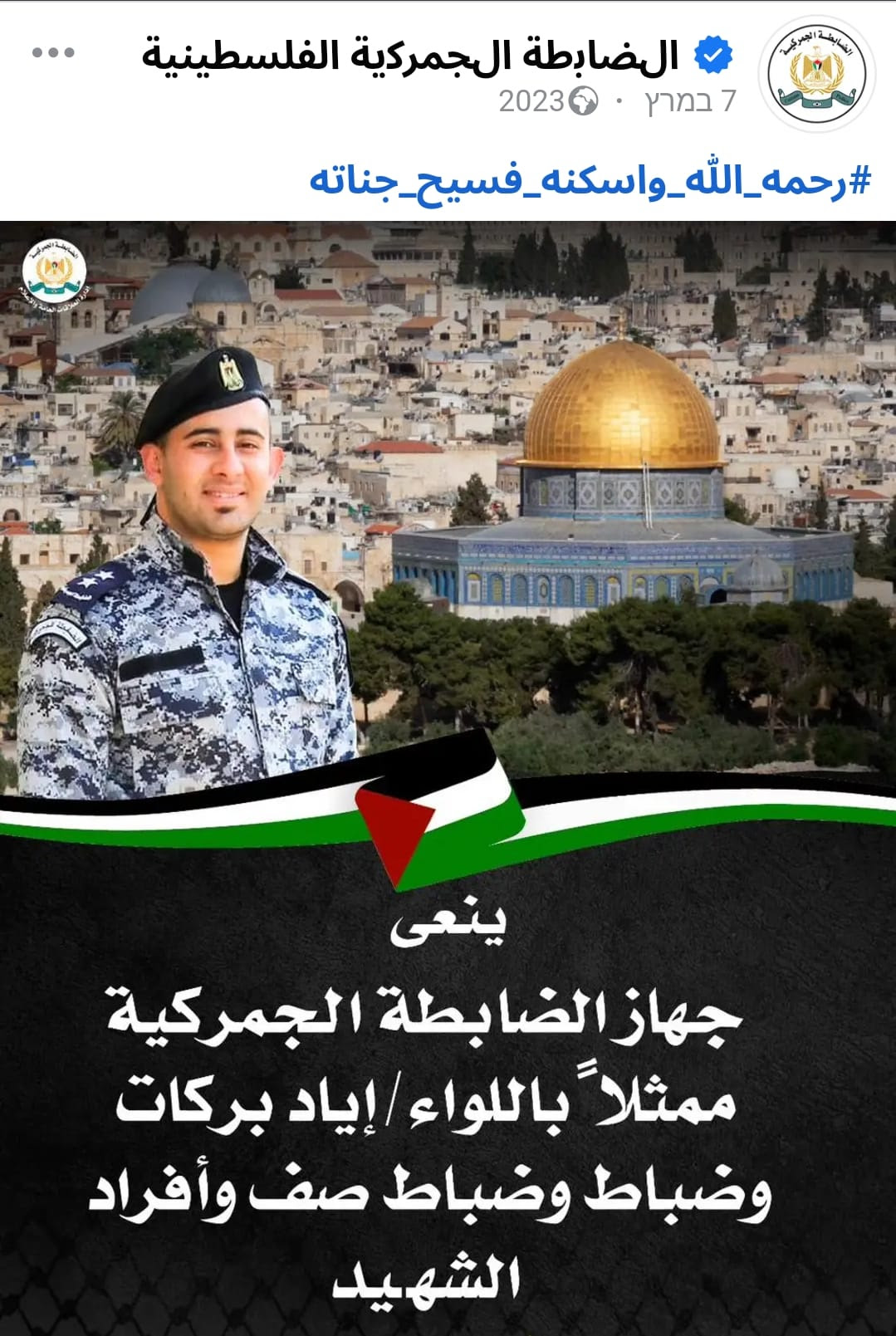 The above is an official PA martyrdom announcement, praising terrorist-in-uniform Ziad al-Zar'ini