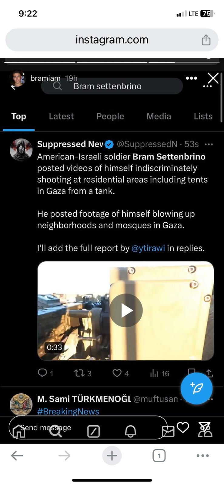 “ I was wondering whether you'd be willing to speak with me about this as well as about your son's decision to join the IDF and deploy to Gaza; your comments on the videos that have been circulating online and attributed to your son Bram Settenbrino, showing someone - him presumably - shooting indiscriminately and blowing up a mosque in Gaza.” - Alice Speri