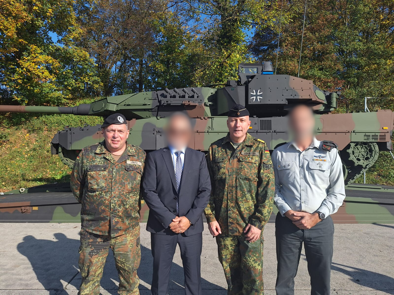 From right to left: Ltc. L., Head of the Survivability Systems Branch at the IMoD’s DDR&D; Vice Admiral Carsten Stawitzki, National Armaments Director in the German Ministry of Defense; M., IMoD’s DDR&D Representative in Germany; Mr. Frank Lobitz, German Project Manager
