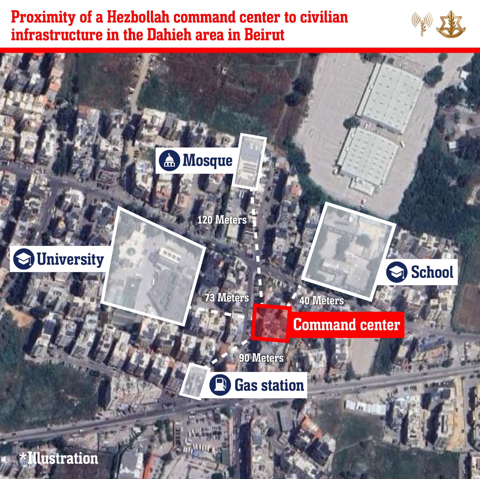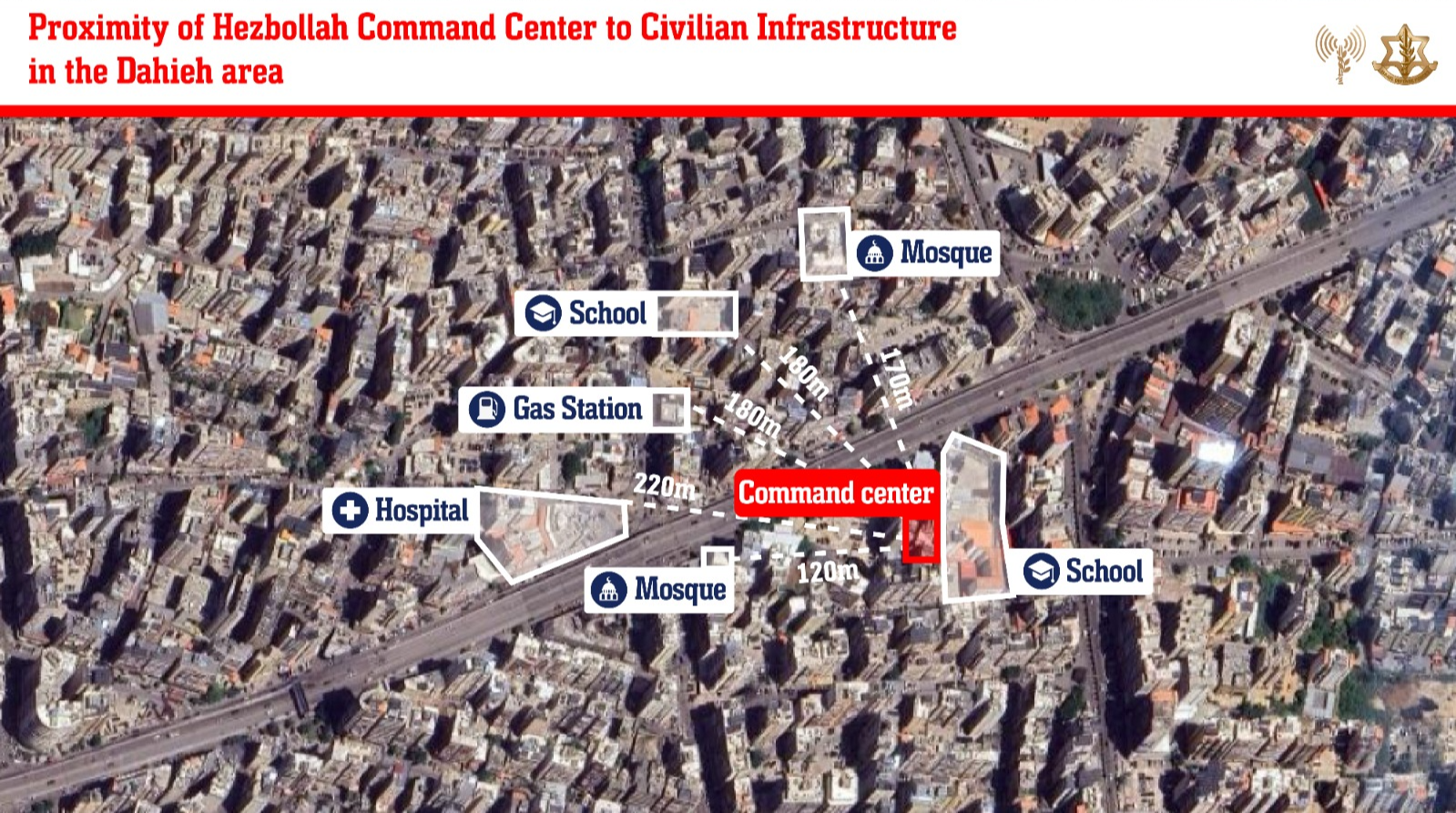 Over the past week, the IDF struck approximately 30 Hezbollah terrorist targets throughout the Dahieh area in Beirut. Among the targets struck were command centers belonging to Hezbollah's Intelligence unit, Hezbollah's coast-to-sea missile unit, and Unit 4400, as well as weapons storage facilities, and additional military command centers.