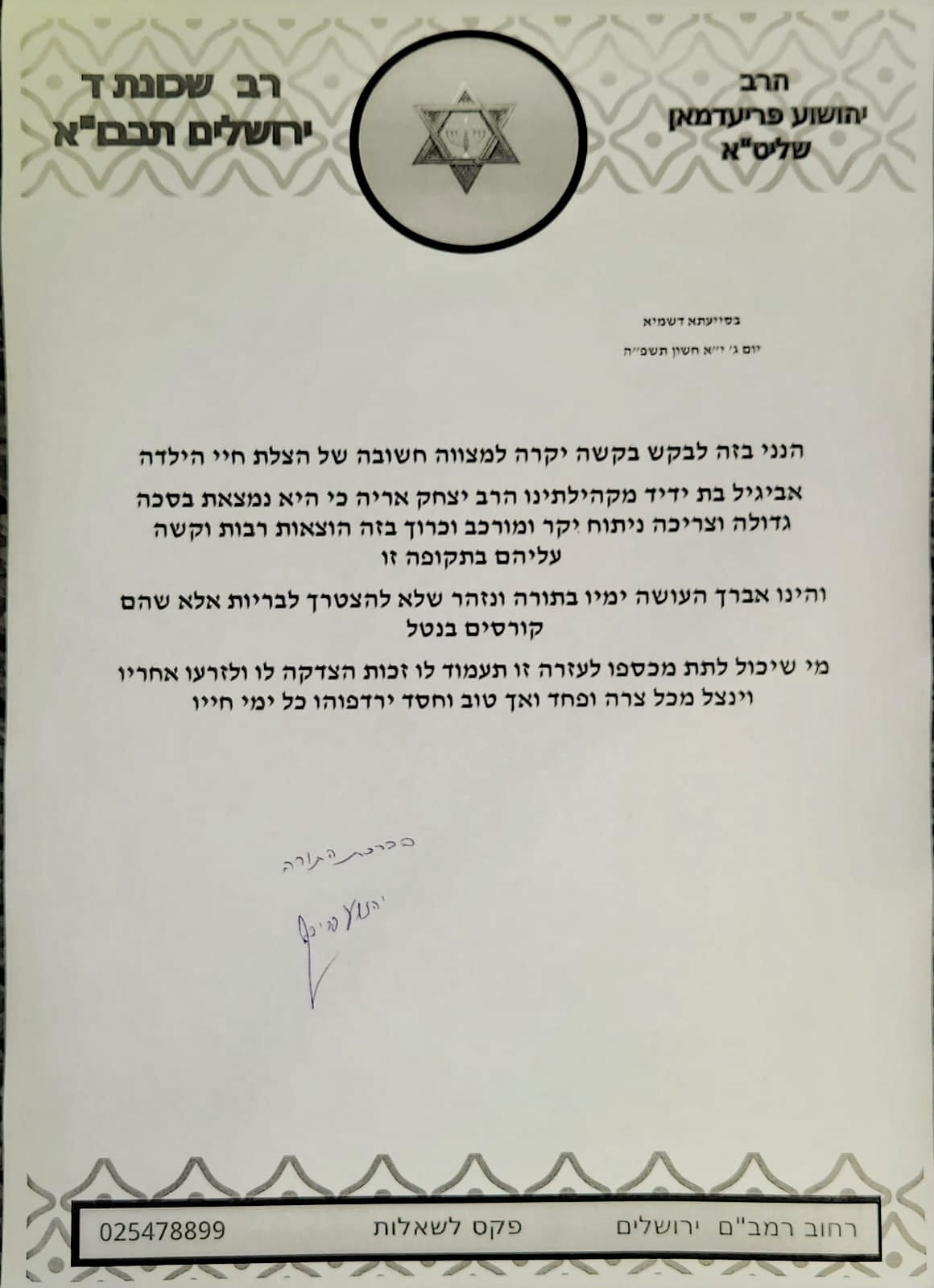 Please, help us keep Avigayil bas Tehillah alive.