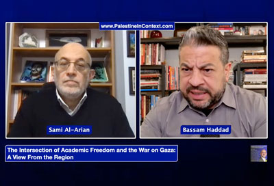With his radical chic Zoom background (a portrait of Che Guevara over his right shoulder and Frantz Fanon over his left), al-Arian's vile and toxic presence filled the one side of the screen while a slightly less maniacal Bassam Haddad played the role of sympathetic interviewer on the other. As al-Arian described his travails, Haddad rolled his eyes in sympathetic outrage. He shrugged his shoulders, frowned, grimaced, bit his lip, and threw up his arms in disbelief at the outrage. He repeatedly complimented al-Arian ("his accomplishments are vast") but played down his guilt ("he was targeted and arrested for activism on Palestine"). Of course Haddad never mentioned al-Arian's 2006 guilty plea for conspiracy to provide services to the PIJ.