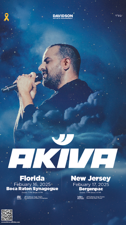 Just a month ago, Akiva’s electric performance brought a packed Los Angeles concert hall to its feet, dancing and singing with every word of his heartfelt hits. Now, he’s bringing his signature blend of Middle Eastern flair and Western style to unite Jews of all backgrounds in South Florida and New Jersey—-just across the bridge from New York.