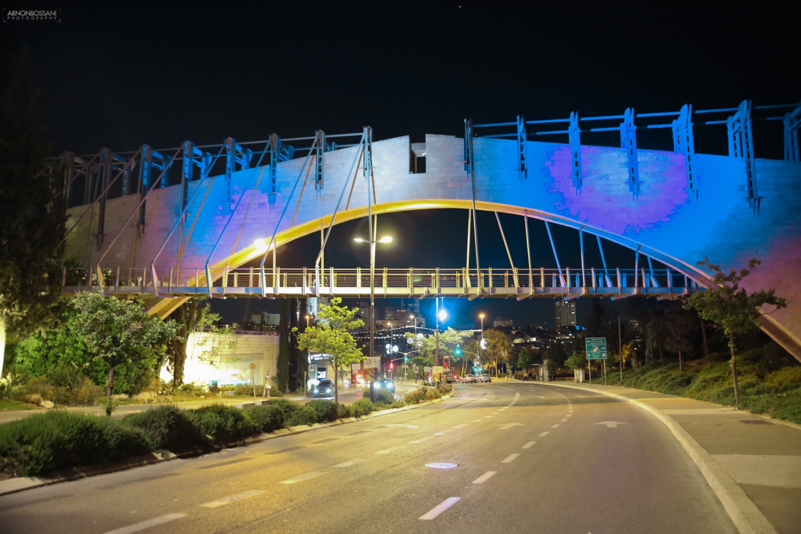 The walls of the Old City, the Chords Bridge, and other buildings throughout Jerusalem were illuminated on Tuesday evening in honor of the eve of Israel's Memorial Day for Fallen Soldiers and Victims of Terror Attacks.