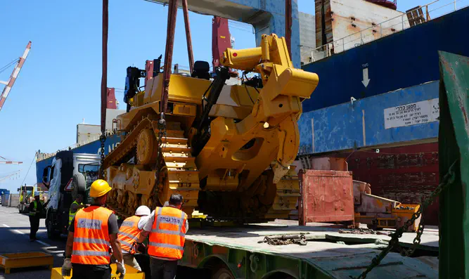 A delivery that consisted of dozens of D9 bulldozers and other equipment for the IDF's Ground Forces were received and unloaded on Wednesday at the Haifa Port as part of a joint operation led by a Ministry Defense procurement delegation in the United States, the IDF's Planning Wing, and the Procurement Directorate's unit for international transport.