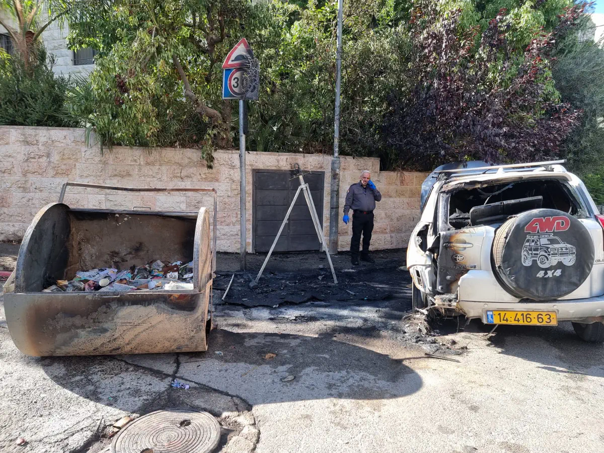 An initial investigation found that the suspects, residents of Jerusalem and central Israel, arrived at the Rehavia neighborhood and set fire to the dumpsters. As a result, the vehicle and the dumpsters were heavily damaged.