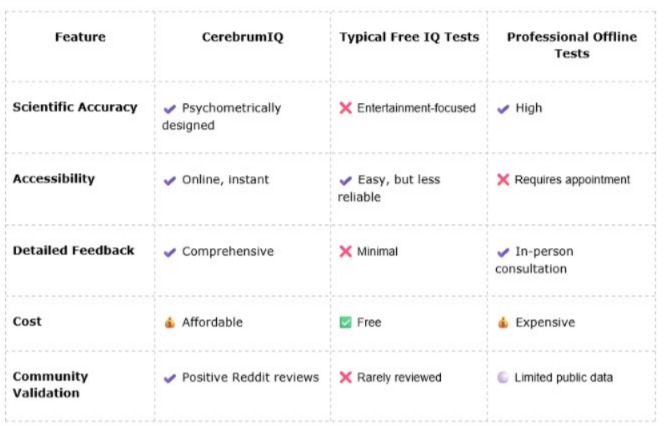 Comparing CerebrumIQ with Other IQ Testing Platforms