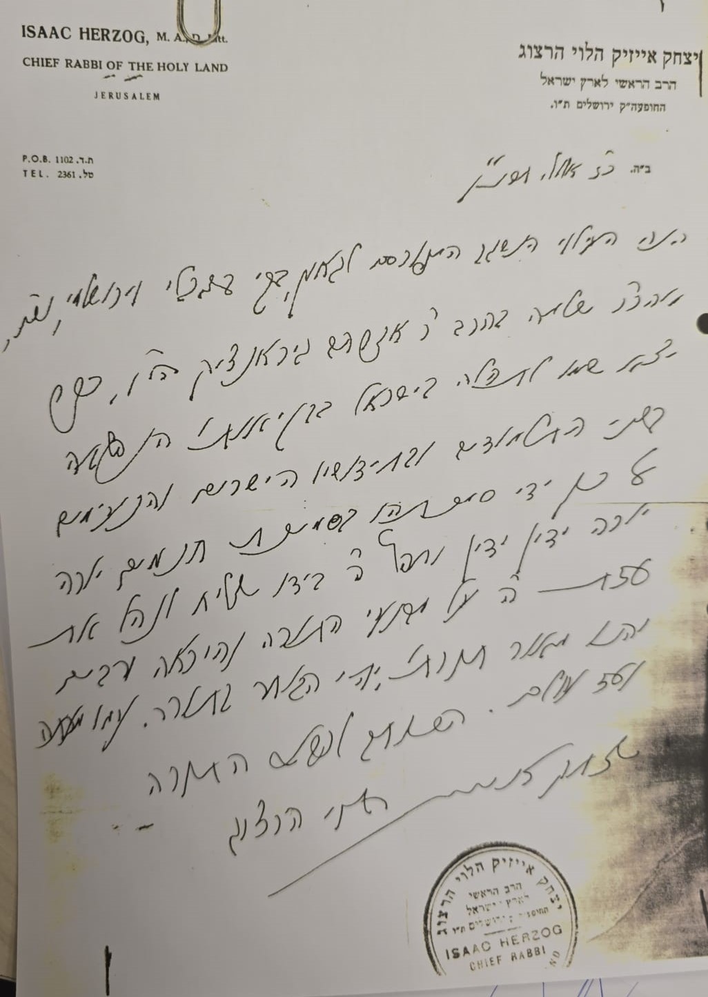 In the letter Rabbi Herzog wrote, "Behold the lofty, celebrated prodigy, a genius well versed in the Babylonian and Jerusalemite Talmuds; his name has risen to renown through his remarkable erudition and his correct and pleasing innovations, and therefore I have granted him the ordination of a Torah sage."