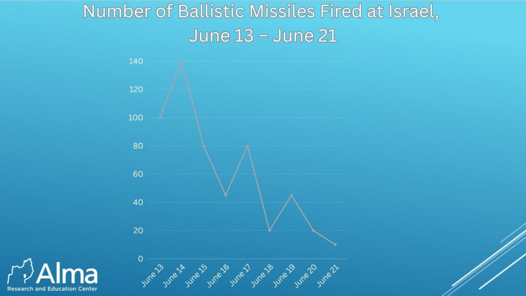 From an analysis of the data regarding the number of missiles launched at Israel daily, it can be seen that in the first two days, Iran launched heavy barrages of 100 missiles and more.