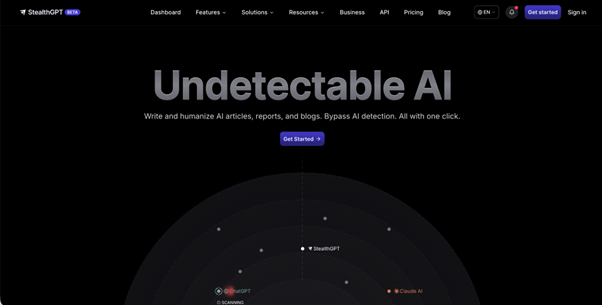 StealthGPT is positioned around "undetectable" writing, with scanning and rewriting wrapped into one pipeline. That framing tells you what the product is optimized for: transforming output until detectors stop complaining.