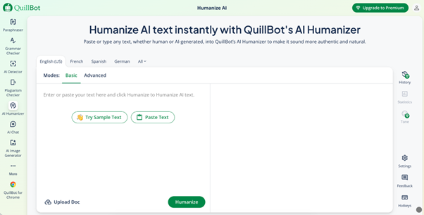 QuillBot is a full writing suite that happens to include an AI detector. If you already rely on QuillBot for paraphrasing, grammar, citations, or rewriting, the detector is an easy add-on because it lives inside the same workspace.