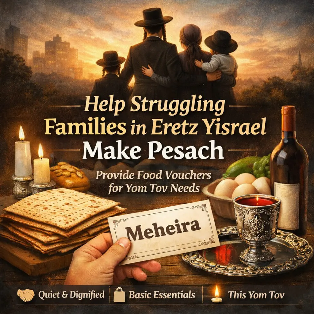 Since the war began in Eretz Yisrael, large frum families across the country have lost their parnassah overnight. Businesses shut down. Income disappeared. Fathers who worked honestly their entire lives suddenly had nothing. And now - with Pesach days away - their fridges are empty and they have no way out.