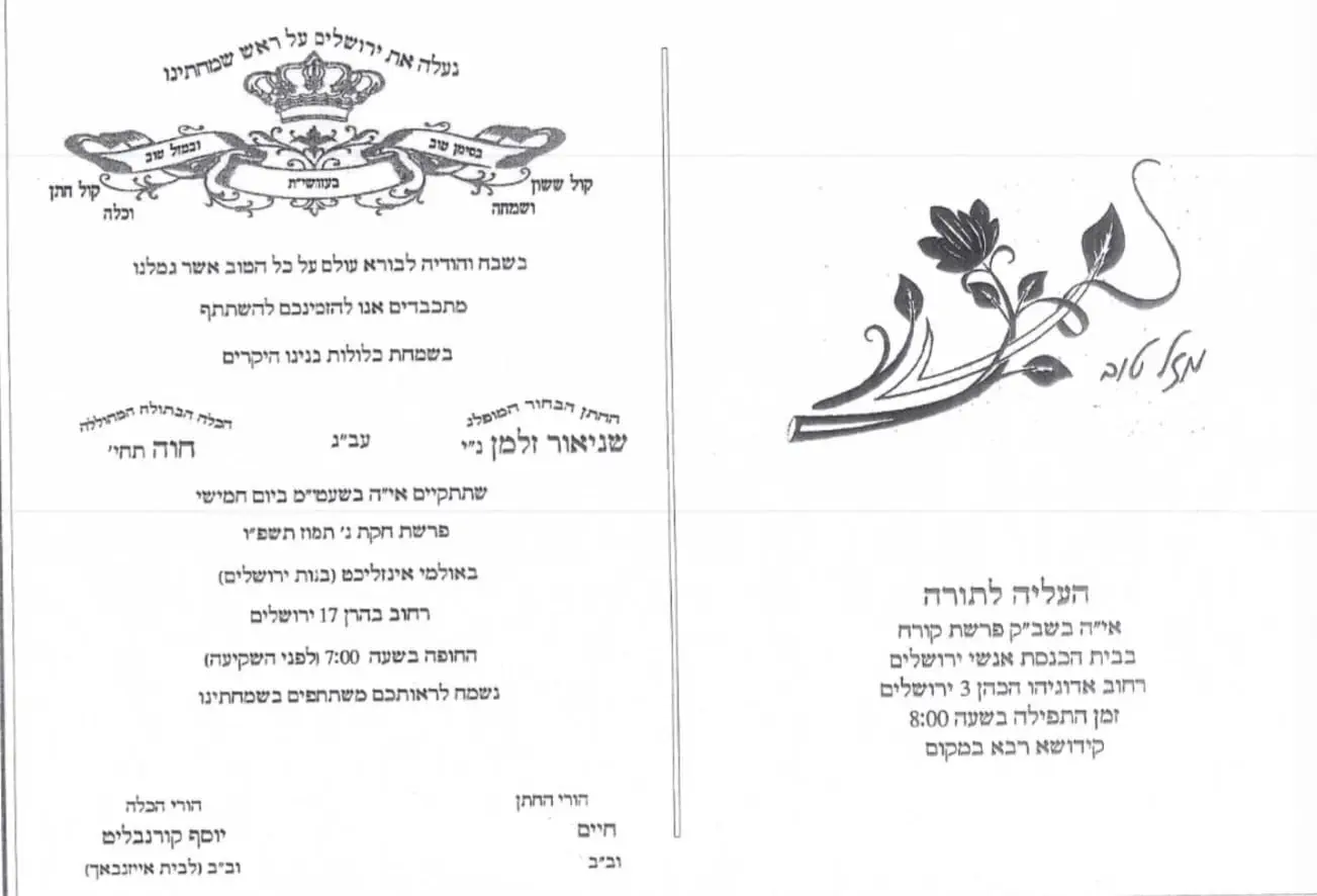 JERUSALEM - In the heart of Yerushalayim Ir HaKodesh lives a man whose life has been one long act of devotion. Reb Yosef Kornblit, a father of fifteen children and a man of deep yiras Shamayim, has spent years doing what few could: marrying off his children with dignity, one after another, despite limited means and mounting pressure.