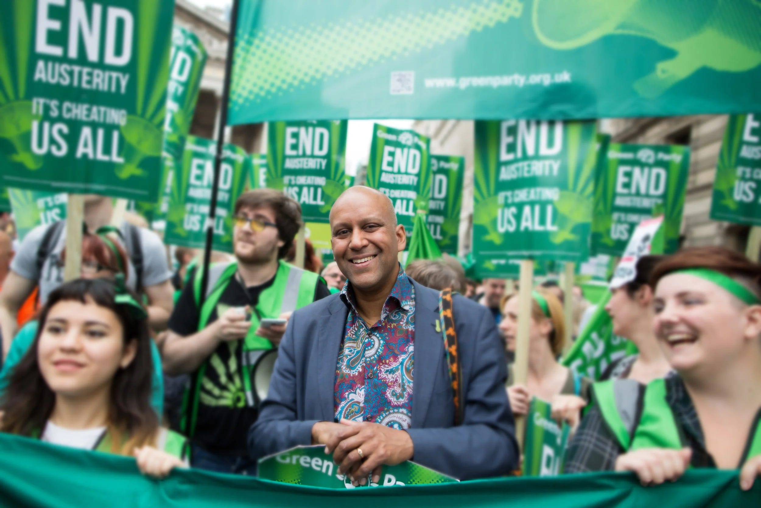 Photo: Dr Shahrar Ali leading a Green Party rally in 2020